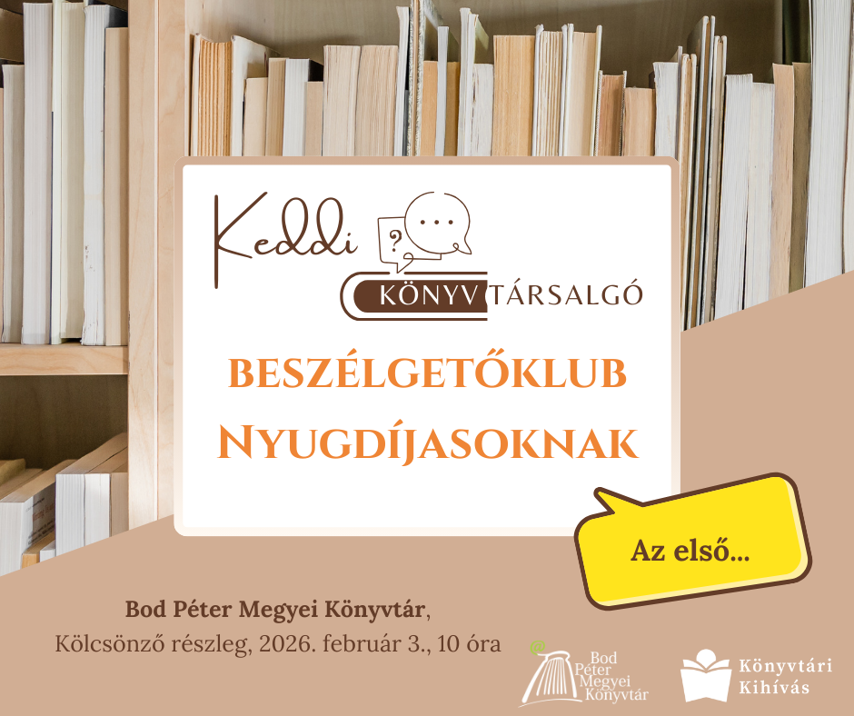 A sepsiszentgyörgyi Bod Péter Megyei Könyvtár kötetlen beszélgetésre várja nyugdíjas olvasóit kedden, 2026. február 3-án 10 órától a Felnőtt kölcsönző részlegre.
